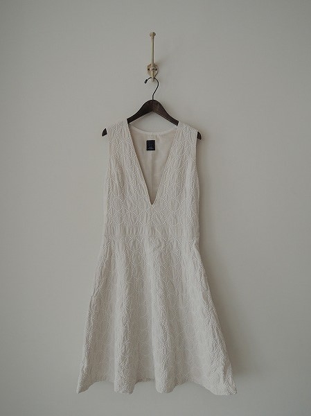 デザイン:mina perhonen「tambourine」の刺繍ワンピースです。カラーはオフホワイトで、全体的に刺繍があしらわれております。左脇下のフック&ファスナーで着脱し、ウエスト部分には切り替えが施されております。裏地付きです。 (掲載写真は、実商品のカラーにできるだけ近づけるよう努力はしておりますが、お使いのモニターや画面設定等によっては、色が異なって見える場合もございますので、予めご了承下さい)