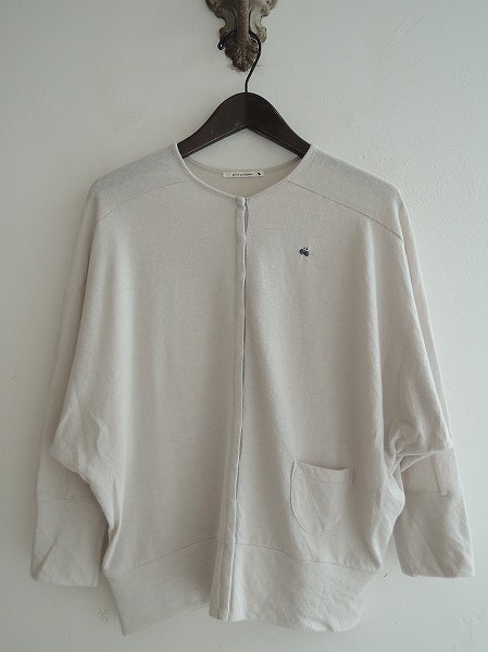 デザイン:mina perhonen 「cozy」のアンゴラカーディガンです。カラーはライトグレーベージュで、柔らかな手触りの薄手ニットであしらわれております。左胸に小さな蝶の刺繍が施され、左裾に小さなパッチポケット付きです。フロントは内側スナップボタン開閉になっております。 (掲載写真は、実商品のカラーにできるだけ近づけるよう努力はしておりますが、お使いのモニターや画面設定等によっては、色が異なって見える場合もございますので、予めご了承下さい)