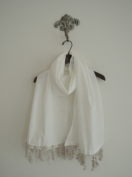 デザイン:mina perhonenのforest paradeシリーズのストールです。カラーはオフホワイトの薄手生地であしらわれており、サイドに揺れるライトグレーの小鳥やお花等の繊細な刺繍モチーフが施されております。