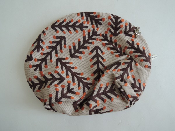 デザイン:mina perhonenのtwigシリーズのポーチです。カラーはベージュ地に光沢のあるブラウン&オレンジで刺繍が施されております。開口部はファスナー式、内側はグレーベージュでポケットが1つございます。素材は表生地は絹50%・毛50%、裏地はリネン100%です。
