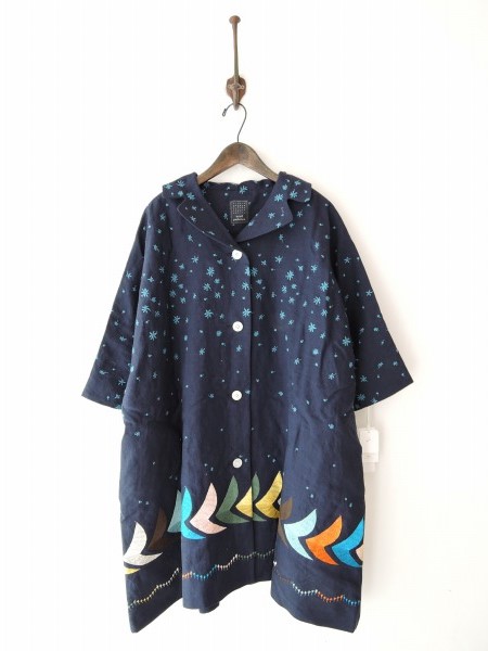 デザイン:2014年 春夏コレクション 京都店7周年記念のミナペルホネン 「hoshi*hana bird」の刺繍コートです。カラーはネイビーベースに、ブルーで「hoshi*hana」のテキスタイル刺繍と、裾辺りには「bird」のカラフルなテキスタイル刺繍が施されています。フロントボタン開閉で、右胸内側&両腰にはポケットがあり、裏地付きです。(掲載写真は、実商品のカラーにできるだけ近づけるよう努力はしておりますが、お使いのモニターや画面設定等によっては、色が異なって見える場合もございますので、予めご了承下さい)