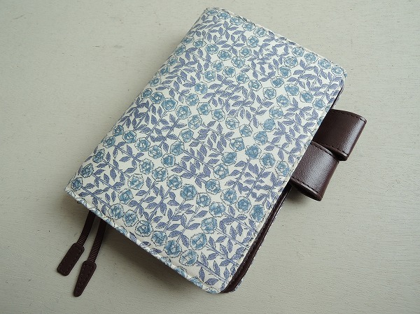 デザイン:mina perhonenのsleeping roseシリーズのほぼ日手帳カバーです。カラーはアイボリー地に暗いブルー等で、手書き風のバラが全面に描かれたデザインで、ペン差しや内側はブラウンの合皮です。内側にはしおりが2本、ポケットが5つ、カードポケットが5つあり、外側にもポケットが1つ施されています。ほぼ日の体温計付きです。
