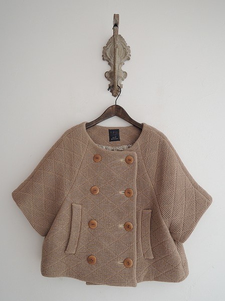 デザイン:mina perhonen 「waffle」のワッフルジャケットです。カラーはピンクベージュで、ワッフルのように凹凸のある生地であしらわれております。ノーカラーのダブルボタンデザインで、袖丈は五分くらい、両腰にポケット付きです。裏地はオフホワイト×グレー系の「unforgettable moment」のテキスタイル柄になっております。(掲載写真は、実商品のカラーにできるだけ近づけるよう努力はしておりますが、お使いのモニターや画面設定等によっては、色が異なって見える場合もございますので、予めご了承下さい)