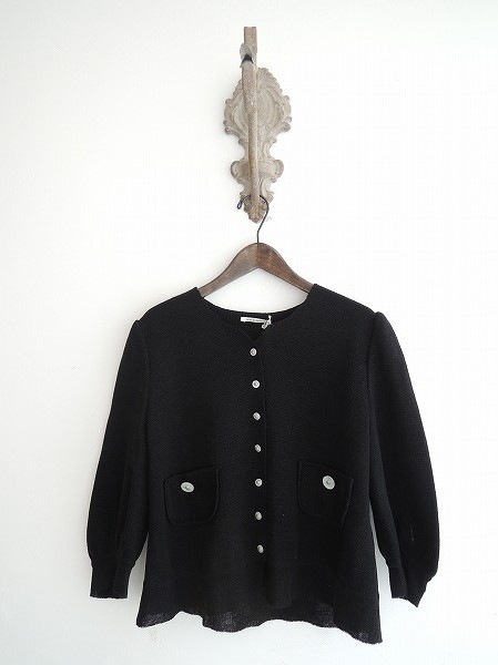 デザイン:mina perhonen「nostalgia」のニットジャケットです。カラーはブラックで、ニット素材であしらわれております。ボタン開閉で、フロント両サイドにポケットがございます。定価48、300円です。 (掲載写真は、実商品のカラーにできるだけ近づけるよう努力はしておりますが、お使いのモニターや画面設定等によっては、色が異なって見える場合もございますので、予めご了承下さい)