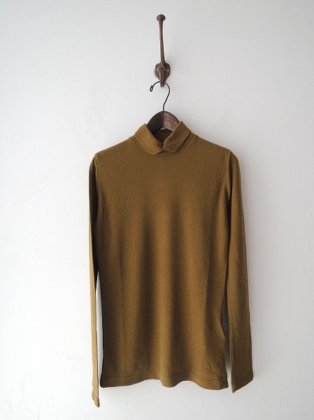 デザイン:mina perhonen 「wintry sky」のハイネックカットソーです。カラーは薄いモスグリーンで、柔らかな手触りの薄手ニット地であしらわれております。定価14700円の商品です。