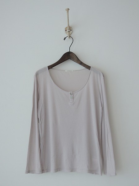 デザイン:mina perhonen「film」のカットソーです。カラーはほんのり紫がかったグレーベージュで、やや薄手素材です。(掲載写真は、実商品のカラーにできるだけ近づけるよう努力はしておりますが、お使いのモニターや画面設定等によっては、色が異なって見える場合もございますので、予めご了承下さい)