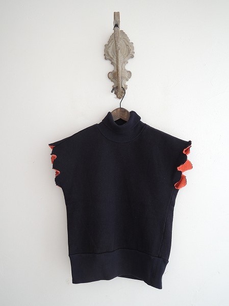 デザイン:mina perhonen「egg-flower-」のハイネックトレーナーです。カラーは赤系の糸混じりの濃紺で、裏起毛のスウェット地であしらわれております。裏地カラーはオレンジ系で、襟元はリブに切り替えられ、袖口は切りっぱなしになっております。定価12、000円です。(掲載写真は、実商品のカラーにできるだけ近づけるよう努力はしておりますが、お使いのモニターや画面設定等によっては、色が異なって見える場合もございますので、予めご了承下さい)