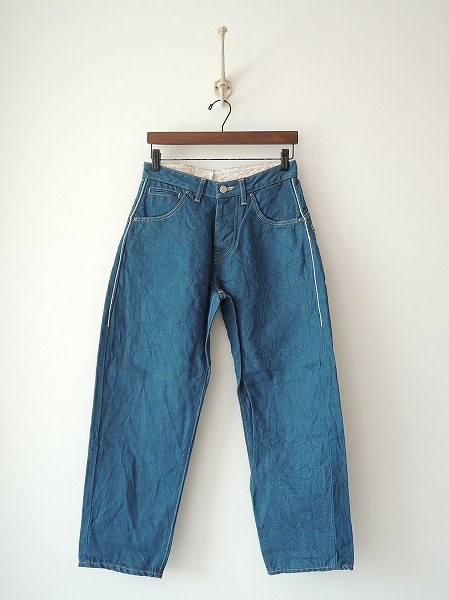 デザイン:mina perhonen 「always」のカラーデニムパンツです。カラーは濃ターコイズブルーで、ライトグレー&アイボリーのステッチが施されております。ボタンフライ仕様で、5ポケット、ウエスト裏地はライトベージュ×オフホワイトの「mermaid」のテキスタイル刺繍です。(掲載写真は、実商品のカラーにできるだけ近づけるよう努力はしておりますが、お使いのモニターや画面設定等によっては、色が異なって見える場合もございますので、予めご了承下さい)