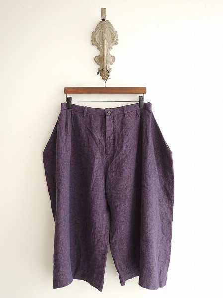 デザイン:mina perhonen 「sandglass」のリネンワイドパンツです。カラーはネイビー×パープルのミックスで、薄手生地であしらわれております。フロント開口部はトップ以外は比翼ボタン仕様で、両腰にポケットが付いております。両腰にピンタック入りでワイドなシルエットになっております。(掲載写真は、実商品のカラーにできるだけ近づけるよう努力はしておりますが、お使いのモニターや画面設定等によっては、色が異なって見える場合もございますので、予めご了承下さい)