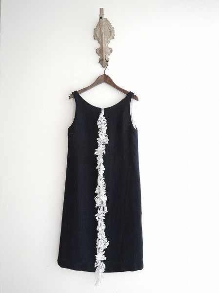 デザイン:mina perhonen 「forest parade」のワンピースです。カラーは濃ネイビーで、からみ織の生地であしらわれており、ホワイトで鳥や蝶・お花や木々たちの繊細な刺繍モチーフが施されております。背上部のループボタン&ファスナーで着脱できます。(掲載写真は、実商品のカラーにできるだけ近づけるよう努力はしておりますが、お使いのモニターや画面設定等によっては、色が異なって見える場合もございますので、予めご了承下さい)