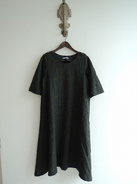デザイン:mina perhonen 「party」のワンピースです。カラーはモスグリーンのストライプベースに、カーキの「蝶」刺繍やカットワーク刺繍があしらわれております。両肩にボタンが付いています。ポケット・裏地はございません。定価77,700円です。(掲載写真は、実商品のカラーにできるだけ近づけるよう努力はしておりますが、お使いのモニターや画面設定等によっては、色が異なって見える場合もございますので、予めご了承下さい)