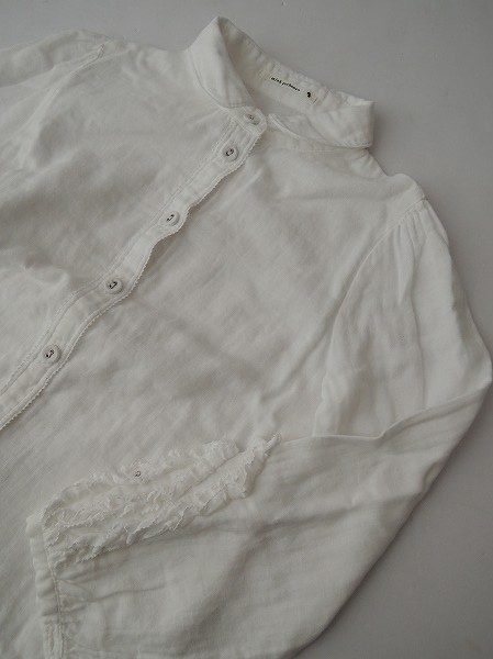 デザイン:mina perhonen 「choux」のブラウスです。カラーはホワイトでガーゼ地であしらわれております。袖口はフリルが施されております。子供用アイテムです。