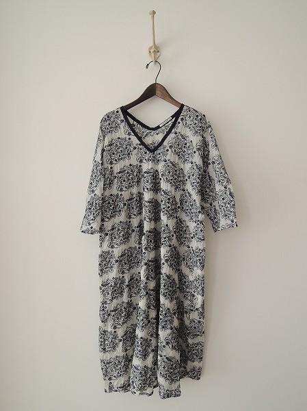 デザイン:mina perhonenの 「sometimes lucky」ワンピースです。カラーはネイビー×オフホワイトのストライプ織で、透け感のある薄手生地であしらわれており、カットワーク刺繍&クローバーの刺繍が施されております。一箇所三つ葉に混ざって四つ葉のクローバーがかくれているデザインです。裏地はございません。