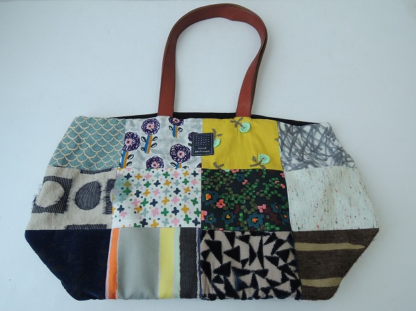 デザイン:mina perhonenのpiece bagシリーズのピースバッグです。choucho・jelly beans ・tambourine・skip等様々なテキスタイルが使用された、贅沢なお品で、持ち手はブラウンのレザーです。開口部にはピンクで蝶々の刺繍が施された被せが付いており、内側にはダークブラウンの裏地とポケットが2つ付いています。素材は表生地が綿・絹・麻・毛で、別布部分が綿100%、裏生地は麻100%、持ち手部分には牛革を使用しています。