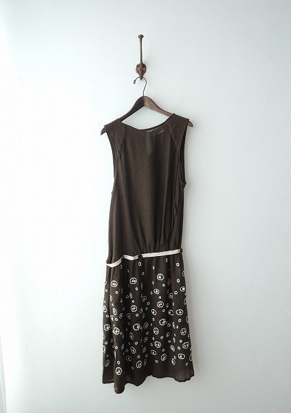 デザイン:mina perhonen 「snowberry」のワンピースです。カラーはチャコールブラウンでガーゼ風の薄手生地であしらわれており、サックスの刺繍&カットワーク刺繍×ピンクの刺繍モチーフが施されております。背上部に10cmのドロップホール付きで、裏地は付いておりません。