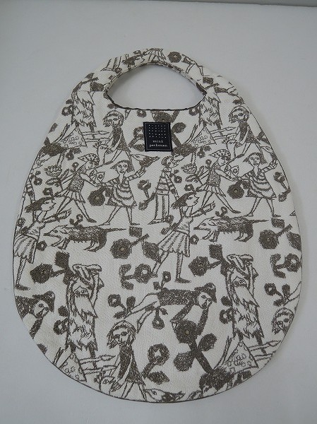 デザイン:mina perhonen 「neighborhood」のエッグバッグです。カラーはオフホワイトで、グレーの刺繍&カットワーク刺繍入りのしっかりとした生地であしらわれており、カーキの合皮のパイピングが施されております。裏地は濃カーキで、素材は表地-麻100% レース-綿100% 裏地-ポリエステル100%です。