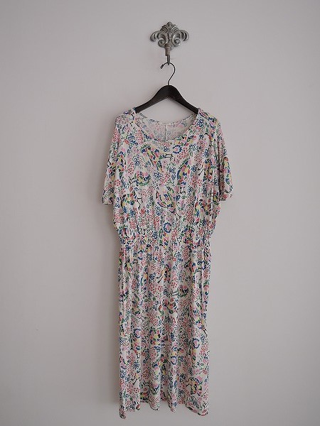 デザイン:mina perhonen 「paradis」の総柄ワンピースです。カラーはオフホワイトベースにブルー・グリーン・ピンクなどカラフルな総柄で、カットソー素材であしらわれております。プルオーバータイプで、ウエストゴム入りです。定価29,400円の商品です。 (掲載写真は、実商品のカラーにできるだけ近づけるよう努力はしておりますが、お使いのモニターや画面設定等によっては、色が異なって見える場合もございますので、予めご了承下さい)