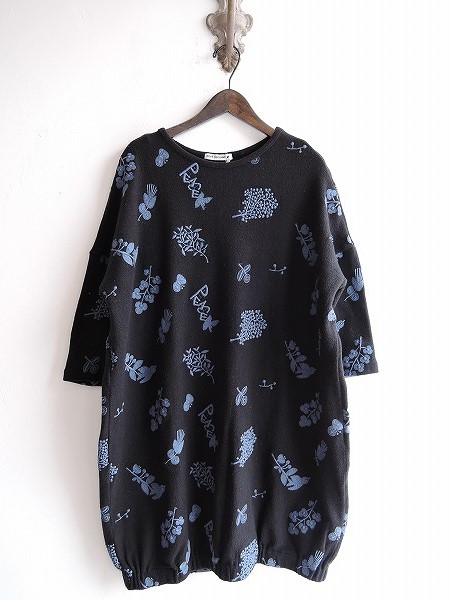 デザイン:mina perhonen 「forest parade」のワンピースです。カラーはブラックの微起毛ニット素材に、くすみブルーの刺繍であしらわれております。プルオーバータイプで、裾はゴム入り、裏地は付いておりません。定価42,000円の商品です。 (掲載写真は、実商品のカラーにできるだけ近づけるよう努力はしておりますが、お使いのモニターや画面設定等によっては、色が異なって見える場合もございますので、予めご了承下さい)