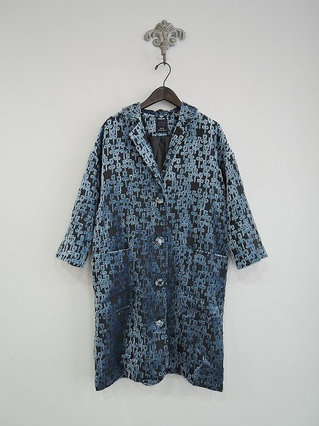 デザイン:mina perhonen 「chorus」のパイル総柄コートです。カラーは濃いグレーベースで、光沢のあるくすみブルーのパイル柄が施されております。フロントボタン開閉で、両腰&右胸内側にポケットがあり、裏地付きです。定価88,200円の商品です。 (掲載写真は、実商品のカラーにできるだけ近づけるよう努力はしておりますが、お使いのモニターや画面設定等によっては、色が異なって見える場合もございますので、予めご了承下さい)