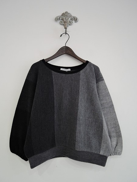 デザイン:mina perhonen 「melty night」のセーターです。カラーはブラック・濃淡グレー系で、微起毛のニット素材であしらわれております。ドルマン袖デザインで、袖口ゴム入りです。定価23,100円です。 (掲載写真は、実商品のカラーにできるだけ近づけるよう努力はしておりますが、お使いのモニターや画面設定等によっては、色が異なって見える場合もございますので、予めご了承下さい)