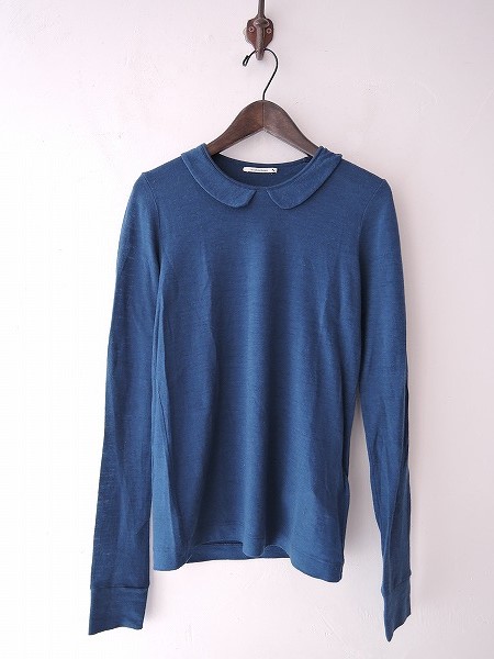 デザイン:mina perhonen 「euphony」のウールカットソーです。カラーは濃いブルー系で、薄手のニット素材であしらわれております。 (掲載写真は、実商品のカラーにできるだけ近づけるよう努力はしておりますが、お使いのモニターや画面設定等によっては、色が異なって見える場合もございますので、予めご了承下さい)