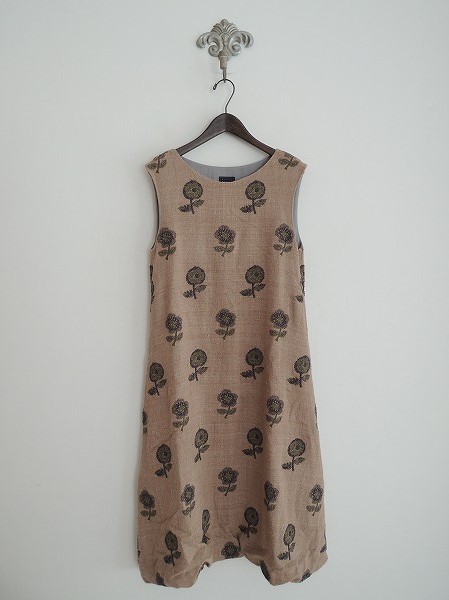 デザイン:mina perhonen 「chum」の刺繍ワンピースです。カラーはブラウンベージュ地にダークグレー×ダークグリーン等の刺繍が施され、起毛がかった素材であしらわれております。左サイドフック&ジッパー開閉で、裾は総ゴム入りで、両サイド腰にシームポケット&裏地付きです。定価77,700円です。(掲載写真は、実商品のカラーにできるだけ近づけるよう努力はしておりますが、お使いのモニターや画面設定等によっては、色が異なって見える場合もございますので、予めご了承下さい)