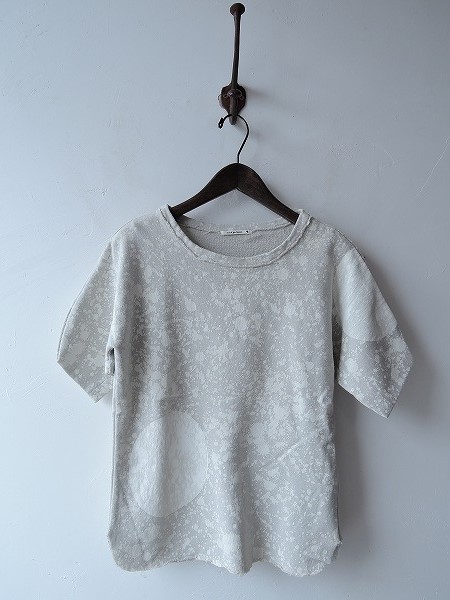 デザイン:mina perhonen 「lash」の半袖カットソーです。カラーはライトグレーで、薄手のスウェット地であしらわれており、アイボリーのペイント加工が施されております。裾はカットオフで、袖はこだわりのあるデザインになっております。 (掲載写真は、実商品のカラーにできるだけ近づけるよう努力はしておりますが、お使いのモニターや画面設定等によっては、色が異なって見える場合もございますので、予めご了承下さい)