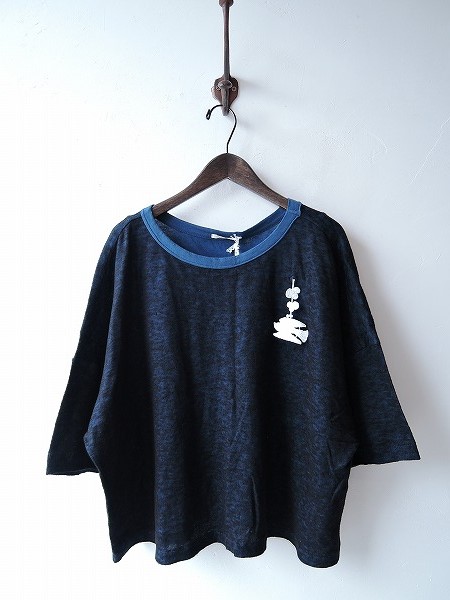 デザイン:mina perhonen 「wafer」のドルマンカットソーです。カラーは黒×ネイビーで、外側はリネン地で内側は肌触りのよいコットン地の二重編みであしらわれております。左胸にオフホワイトのモチーフ付きで、定価16,800円です。 (掲載写真は、実商品のカラーにできるだけ近づけるよう努力はしておりますが、お使いのモニターや画面設定等によっては、色が異なって見える場合もございますので、予めご了承下さい)
