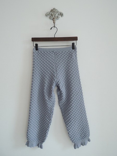 デザイン:mina perhonen 「port of light」のスパッツです。カラーはグレーで、凹凸のある波の様な柄の、少し透け感のある薄手ニットの編み模様になっております。ウエストはゴム入りで、七分くらいの丈になります。 (掲載写真は、実商品のカラーにできるだけ近づけるよう努力はしておりますが、お使いのモニターや画面設定等によっては、色が異なって見える場合もございますので、予めご了承下さい)