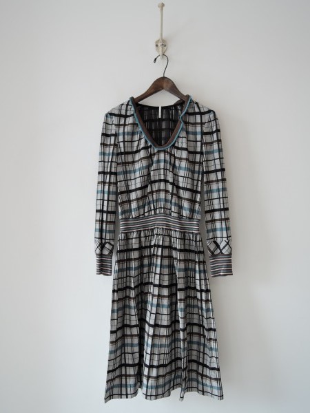デザイン:mina perhonen 「fence」のワンピースです。カラーはグレー×ブラック×グリーン系カーキなどで、チェック織の薄手生地であしらわれており、一部ブラウン×ライトブルー×ピンクのボーダーのリブに切り替えられております。(掲載写真は、実商品のカラーにできるだけ近づけるよう努力はしておりますが、お使いのモニターや画面設定等によっては、色が異なって見える場合もございますので、予めご了承下さい)