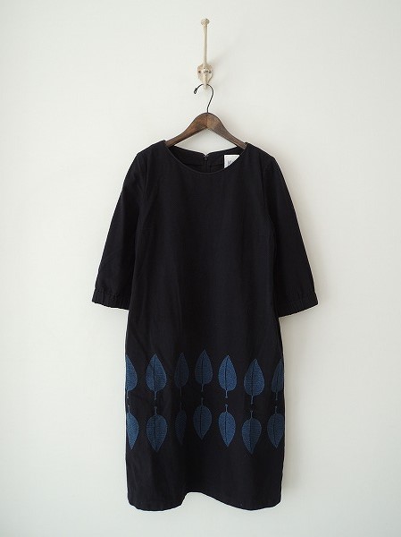 デザイン:ミナペルホネンランドリー 「happa」の刺繍入りワンピースです。カラーはブラックで、微起毛の薄手素材であしらわれ、濃いブルーの刺繍が施されております。バックのフック&ファスナーで着脱でき、両腰サイドにポケットがございます。袖口ゴム入りで、裏地は付いておりません。 (掲載写真は、実商品のカラーにできるだけ近づけるよう努力はしておりますが、お使いのモニターや画面設定等によっては、色が異なって見える場合もございますので、予めご了承下さい)