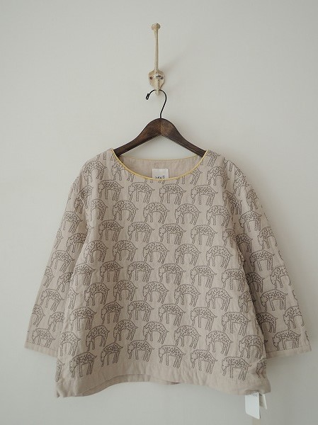 デザイン:ミナペルホネンランドリー 「count」の刺繍プルオーバーです。カラーはライトベージュで、グレーの刺繍が施されております。ネックまわりにイエロー系のモールコードがあしらわれています。 (掲載写真は、実商品のカラーにできるだけ近づけるよう努力はしておりますが、お使いのモニターや画面設定等によっては、色が異なって見える場合もございますので、予めご了承下さい)