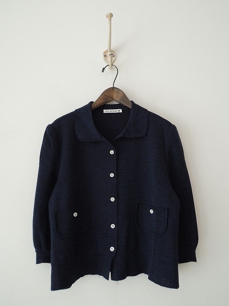 デザイン:mina perhonen 「nostalgia」のニットジャケットです。カラーはミックスネイビーで、ニット素材であしらわれています。ボタン開閉で、フロント左右にポケットがあり、裏地は付いておりません。 (掲載写真は、実商品のカラーにできるだけ近づけるよう努力はしておりますが、お使いのモニターや画面設定等によっては、色が異なって見える場合もございますので、予めご了承下さい)