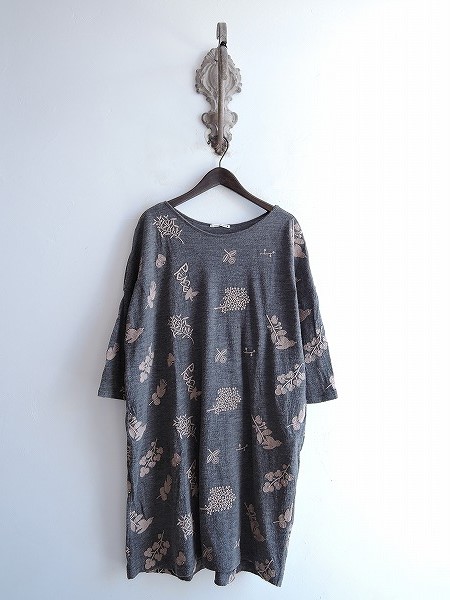 デザイン:mina perhonen「forest parade」の刺繍ワンピースです。カラーはグレーベースにベージュの刺繍が施された毛羽感のある素材であしらわれております。プルオーバータイプの着脱になります。 (掲載写真は、実商品のカラーにできるだけ近づけるよう努力はしておりますが、お使いのモニターや画面設定等によっては、色が異なって見える場合もございますので、予めご了承下さい)