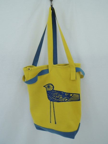 デザイン:2015年SSコレクションmina perhonenのminglingシリーズのティルトバッグです。カラーはイエロー×水色の配色で、フロントにはブルーのフロッキープリントが施されています。柔らかな起毛素材で、外側にポケットが1つございます。