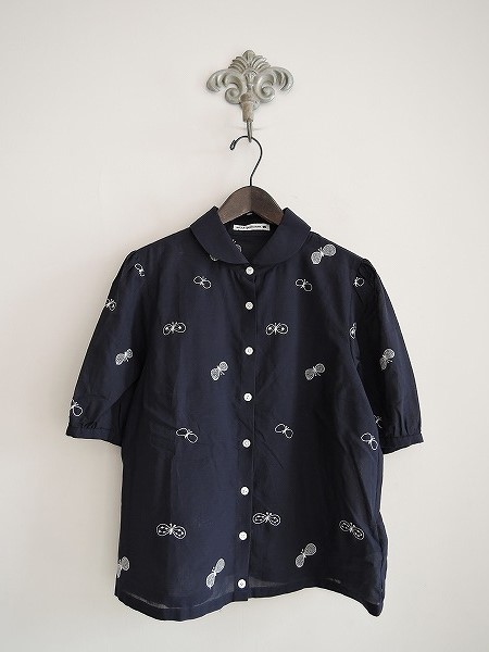 デザイン:mina perhonen 「choucho」の刺繍ブラウスです。カラーはネイビーで、ホワイトの刺繍が施されています。薄手素材であしらわれ、ボタン開閉です。 (掲載写真は、実商品のカラーにできるだけ近づけるよう努力はしておりますが、お使いのモニターや画面設定等によっては、色が異なって見える場合もございますので、予めご了承下さい)