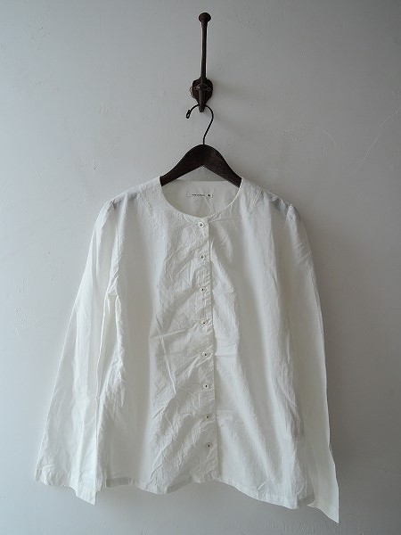 デザイン:mina perhonen「zero」のコットンシャツです。カラーはホワイトで、やや透け感のある生地であしらわれております。ボタン開閉で、裾サイドに4cmのスリット入りです。 (掲載写真は、実商品のカラーにできるだけ近づけるよう努力はしておりますが、お使いのモニターや画面設定等によっては、色が異なって見える場合もございますので、予めご了承下さい)