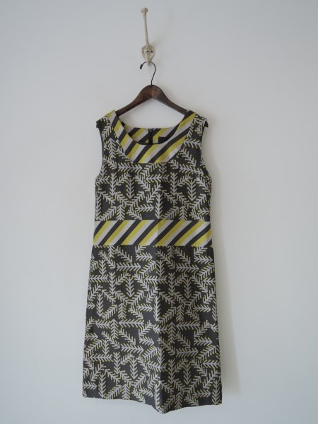 デザイン:mina perhonen「twig」の総柄ワンピースです。カラーはグレー・光沢感のあるライトグレー・イエロー系の総柄で、バックフック&ファスナーで着脱できます。衿ぐりやウエストに斜めストライプの切り替えが施され、裏地付きです。 (掲載写真は、実商品のカラーにできるだけ近づけるよう努力はしておりますが、お使いのモニターや画面設定等によっては、色が異なって見える場合もございますので、予めご了承下さい)