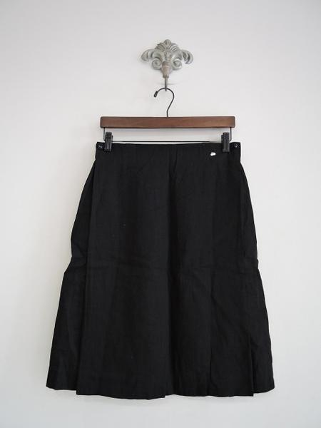 デザイン:mina perhonen「Nordic」のリネンスカートです。カラーはブラックで、やや薄手生地であしらわれております。ウエストはバックがゴムになっており、フロント両サイドにボタン付きです。裏地付きで、本体価格32,000円の商品です。 (掲載写真は、実商品のカラーにできるだけ近づけるよう努力はしておりますが、お使いのモニターや画面設定等によっては、色が異なって見える場合もございますので、予めご了承下さい)
