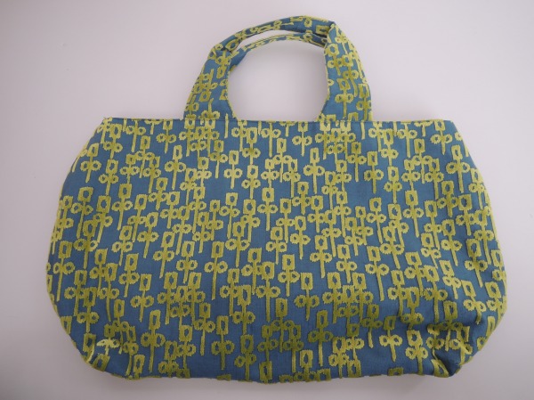 デザイン:mina perhonenのchorusシリーズのパニーニバッグ大です。カラーはグレー地にくすんだイエローのパイル刺繍が一面に施されたデザインで、内側は青み掛かったグレーの裏地にホワイトの蝶々の刺繍があしらわれた被せと、ポケットが2つ付いています。素材は表生地ベースが綿50%、麻50%、パイルがアクリル100%です。