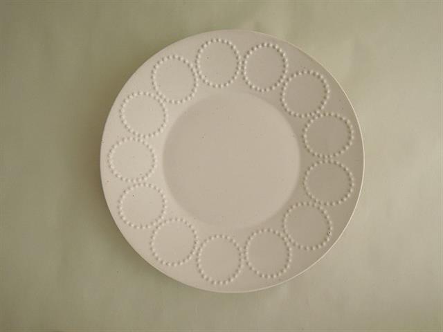 デザイン:mina perhonenのtambourine プレート大です。カラーはホワイトで凹凸のある『tambourine』模様が施されたデザインです。
