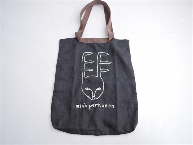 デザイン:mina perhonenのくるみの木限定 Tunlaw オリジナルトートバッグです。カラーはグレー地にホワイトのフロッキープリントが施されたデザインで、持ち手はブラウンのスウェード調生地が使用されています。素材は指定外繊維(ヘンプ)100%、付属がポリエステル80%・ポリウレタン20%です。