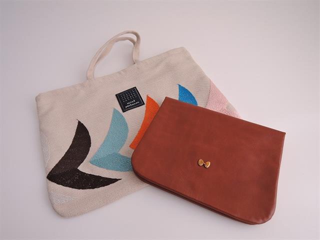 デザイン:mina perhonenのbird母子手帳バッグ&レザーカードケースです。バッグカラーはベージュ地にオレンジ・水色・淡いピンク等で刺繍が施されたデザインで、開口部はファスナーです。内側にはライトグレーの裏地がついており、素材は表生地・刺繍部分・裏生地ともに綿100%です。カードケースはブラウンのレザーで、フロントにはゴールドの蝶々モチーフがあしらわれています。内側にはポケット2つ、カード入れが9つございます。