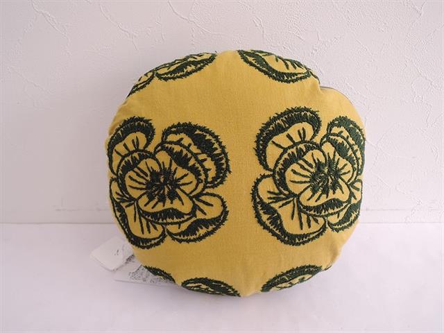 デザイン:mina perhonenのpot pie cushion hope ポットパイクッションです。カラーはマスタード地にダークグリーンでお花の刺繍が施されたデザインで、反対面はグレーグリーン地です。ファスナー開閉で、カバーの取り外しが可能です。素材はカバーが表が麻100%、刺繍部分が綿100%、裏がポリエステル65%・35%、裏生地が綿100%です。ヌードクッションが側生地がポリエステル100%、中素材がリサイクルダウン50%・リサイクルフェザー50%です。
