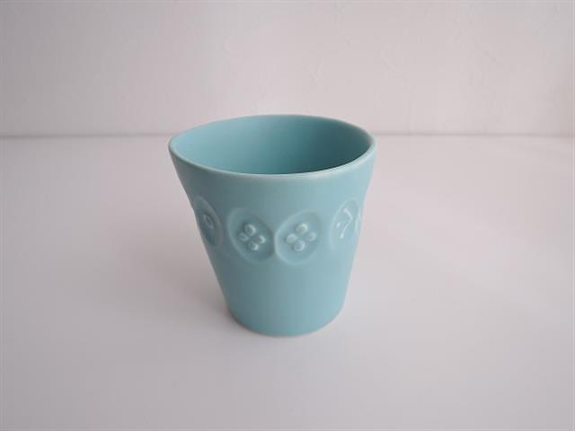 デザイン:mina perhonenのchoucho こどものうつわ カップです。カラーは水色で、凹凸のある蝶々模様が施されたデザインです。マットな質感のお品です。
