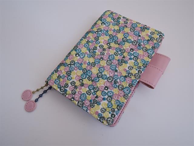 デザイン:mina perhonen×HOBONICHIのskyfulほぼ日手帳カバーです。カラーはホワイト地に、ピンク・グリーン・濃いめ水色・イエローの刺繍が施されたデザインで、内側はピンクのレザー調です。内側にはカード入れが6つ、ポケットが4つ、ブックマークが2本、ペン挿しがございます。