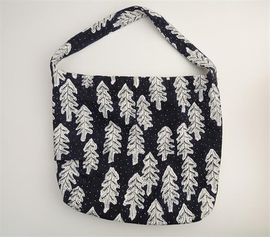 デザイン:mina perhonenのsnow candle ボディバッグ大です。カラーはムラのあるネイビーベースに、ライトグレー・チャコールなどのテキスタイルプリントで、持ち手は2wayデザインです。開口部はファスナー開きで、内側はブラックの裏地とジッパーポケットが付いております。表生地が綿51%,毛42%,ナイロン5%,ポリエステル2%,裏生地が綿100%です。