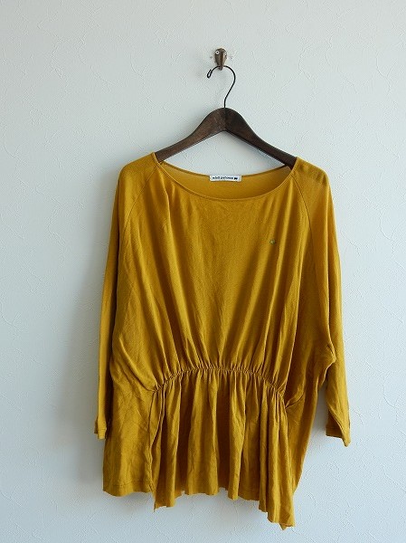 デザイン:mina perhonen 「ilta」です。カラーはマスタード、やや透け感のある薄手素材で、胸下にシャーリングゴムがあしらわれております。 (掲載写真は、実商品のカラーにできるだけ近づけるよう努力はしておりますが、お使いのモニターや画面設定等によっては、色が異なって見える場合もございますので、予めご了承下さい)