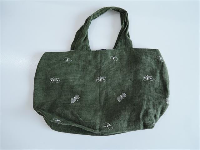 デザイン:mina perhonenのchoucho パニーニバッグです。カラーはグリーンのリネン地ベースに、ホワイトの蝶のテキスタイル刺繍が施されています。内側には薄グリーン系の裏地と、ボタン付きポケットが2つ、蝶刺繍の施された蓋カバー付きです。表地と裏地が麻100%,刺繍が綿100%です。(掲載写真は、実商品のカラーにできるだけ近づけるよう努力はしておりますが、お使いのモニターや画面設定等によっては、色が異なって見える場合もございますので、予めご了承下さい)