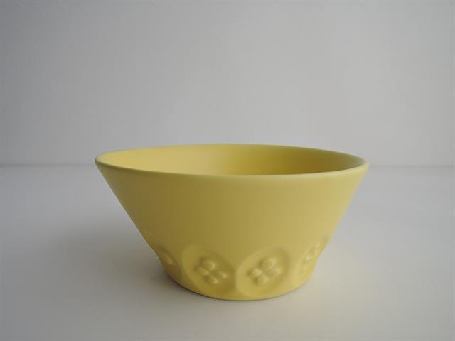 デザイン:mina perhonenのこどものうつわ カップです。カラーはイエローで凹凸のある蝶々模様が施されたデザインです。マットな質感のお品です。
